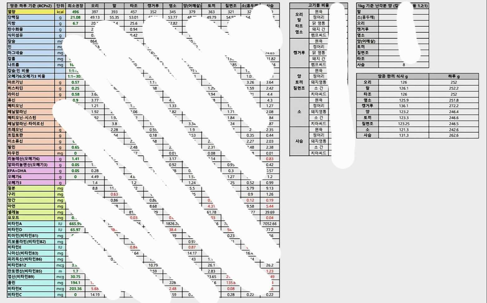 처음에는 식단을 짜는 것부터 시작해 봤어요. 이 친구를 잘 알아야 건강한 밥을 해줄수 있다고 생각했거든요.