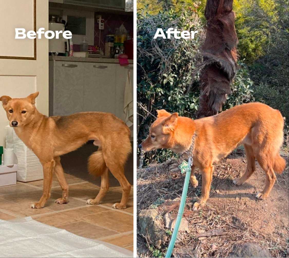 자연식을 먹이기 전, 빈이는 너무 말라서 엉덩이뼈와 갈비뼈가 선명하게 보일 정도였어요. 입이 짧아 사료나 간식도 금방 질려했고, 살이 찌지 않으니 산책 중 "불쌍하다"는 말을 자주 들었죠.