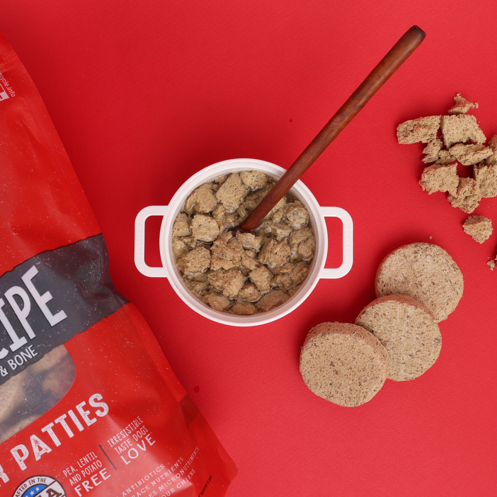 동결건조로 만든 소형 패티라 급여가 간편하고 양 조절도 쉬워요. 아이들의 주식으로도, 주식 토핑이나 간식으로도 활용 가능해요.