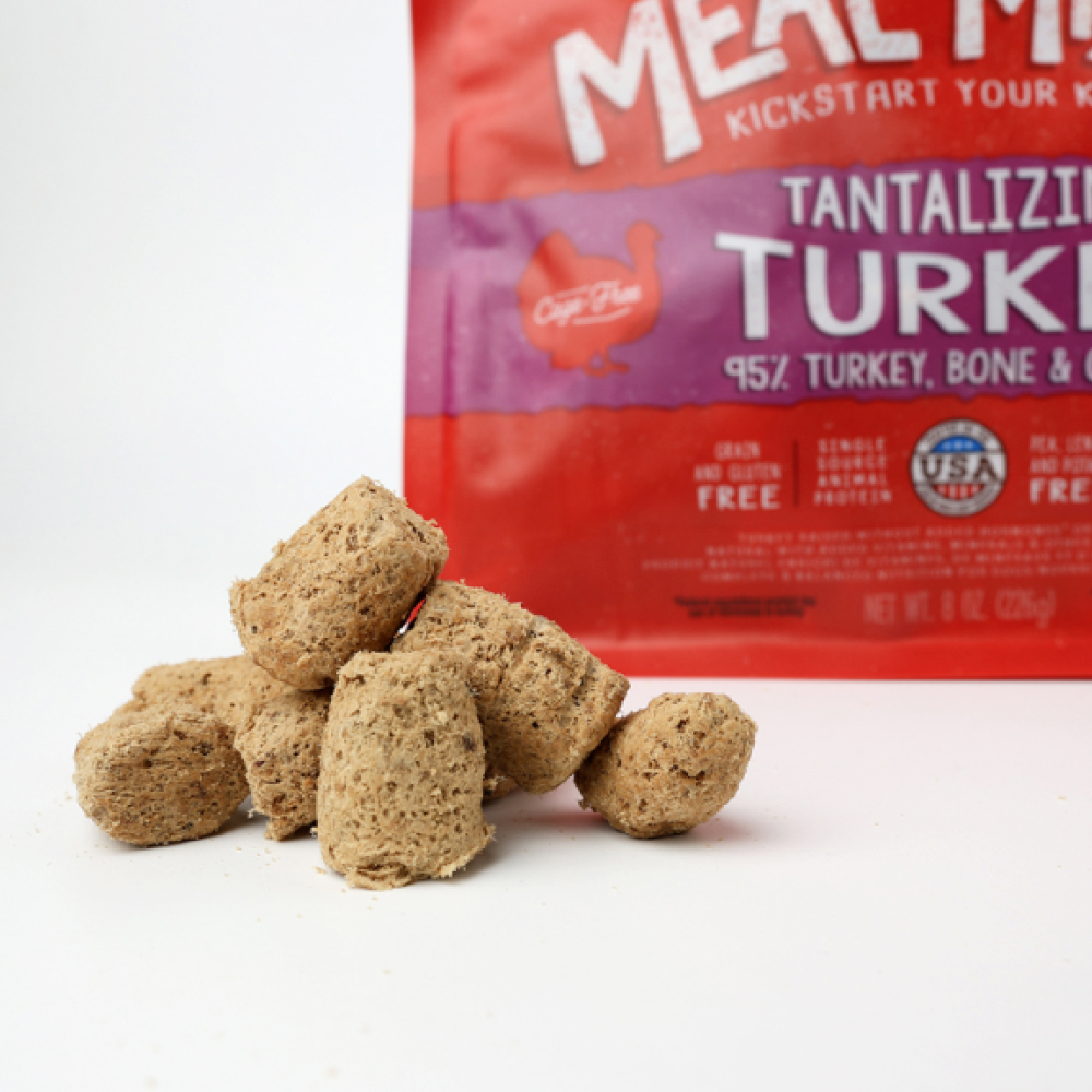 신선한 칠면조 고기와 간, 모래주머니, 갈아낸 뼈를 담아 영양 밸런스가 뛰어난 동결건조 토퍼예요. 영양은 물론, 기호성까지 놓치지 않았답니다.