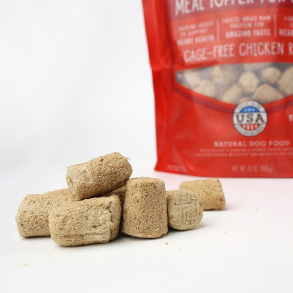 동결건조로 만든 헬씨하트는 사료 위에 올리는 토핑이나 간식으로 급여 가능해요.