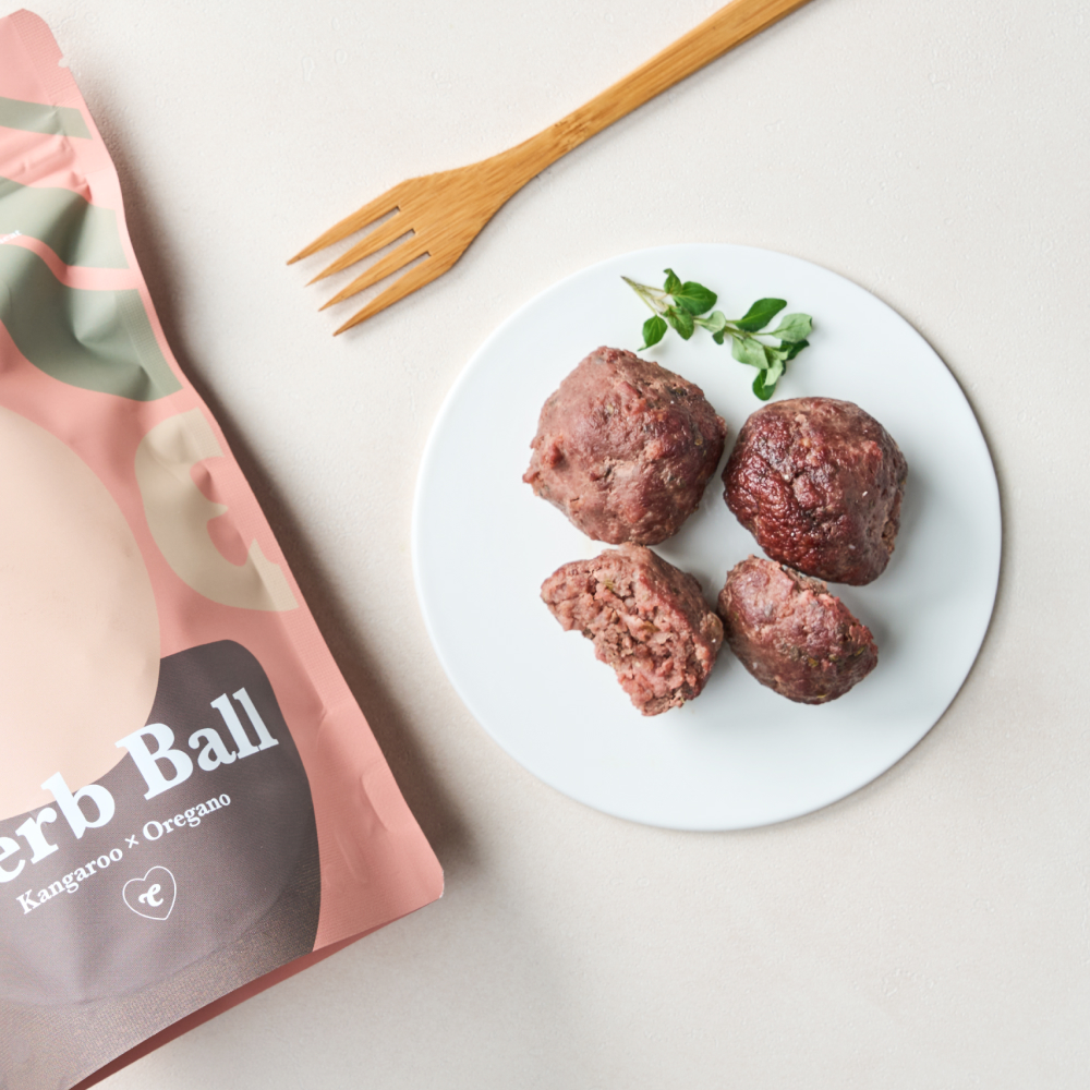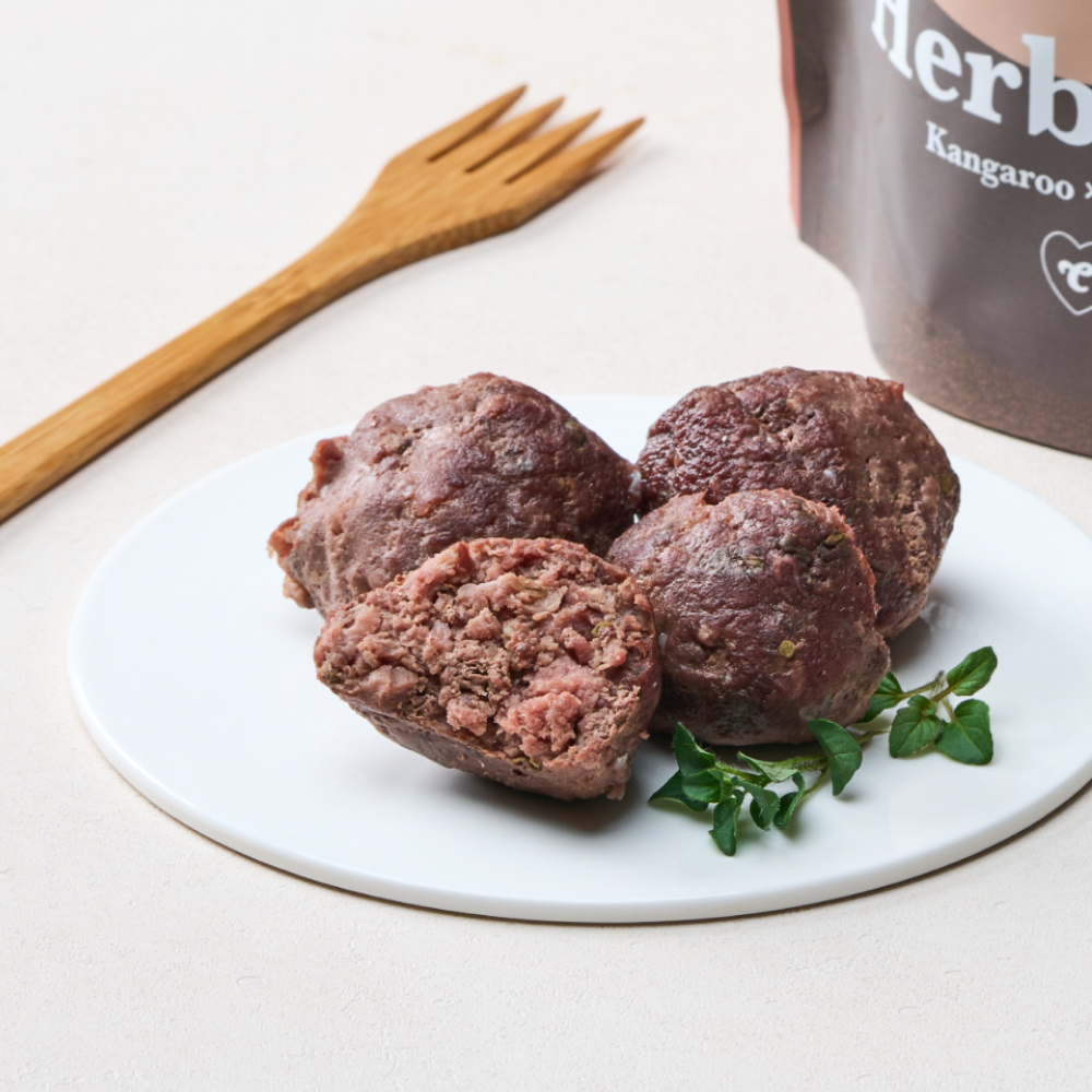 캥거루 허브볼은 무항생제 청정 호주산 캥거루를 사용한 저지방 고단백 간식이에요.