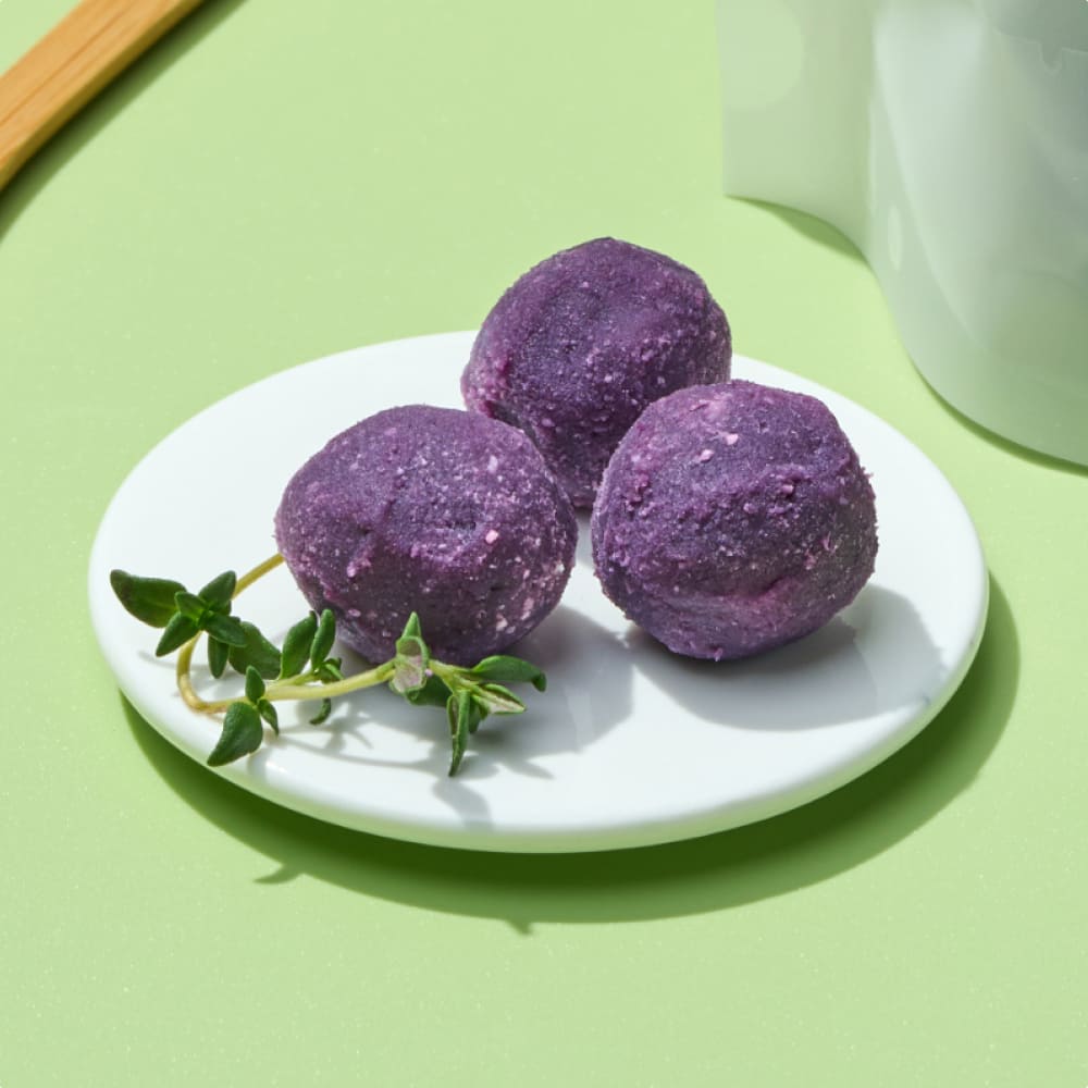 부드럽게 급여 할 수 있는 자색 고구마볼에 살포시 감싸서 필포켓 간식으로 활용해 보세요.