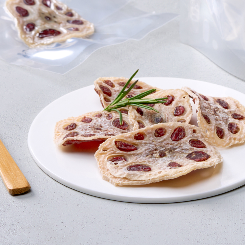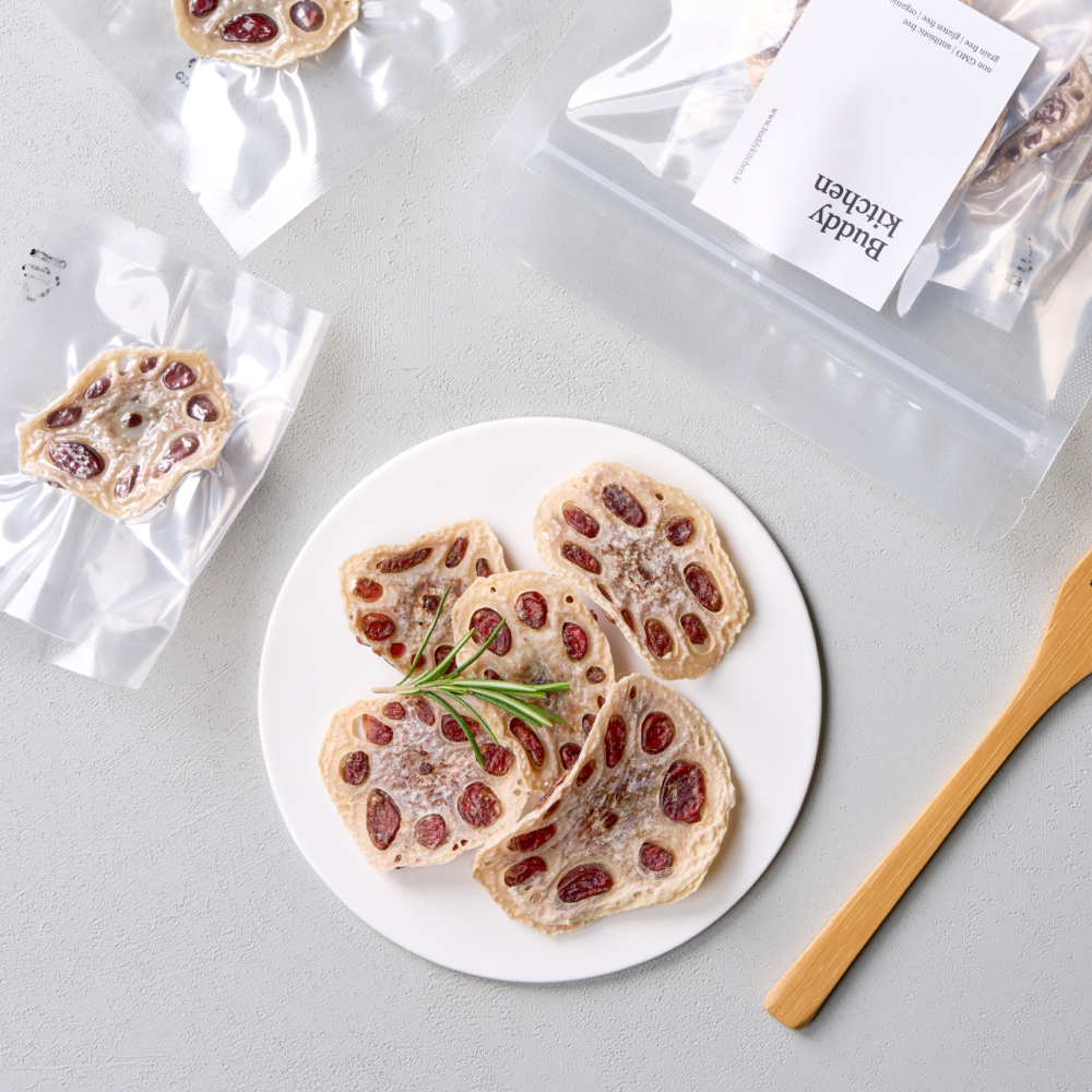 간식에서도 원료 차이를 느낄 수 있도록, 무항생제 국산 오리가슴살을 중심으로 연근을 더한 덕 연근칩!